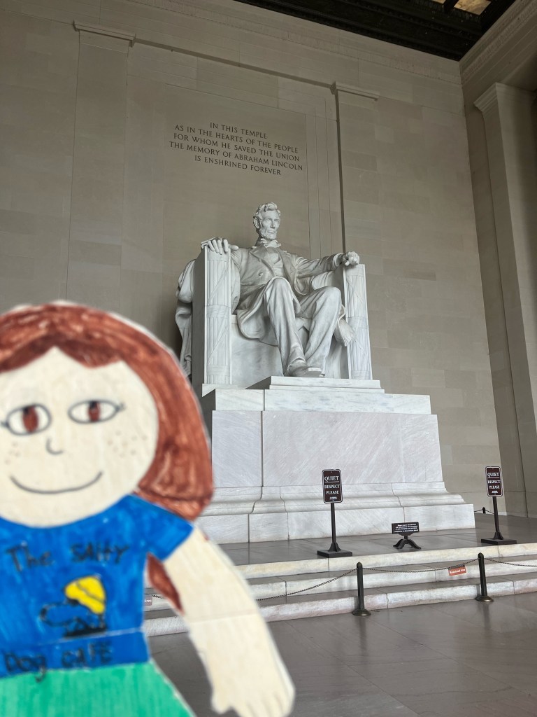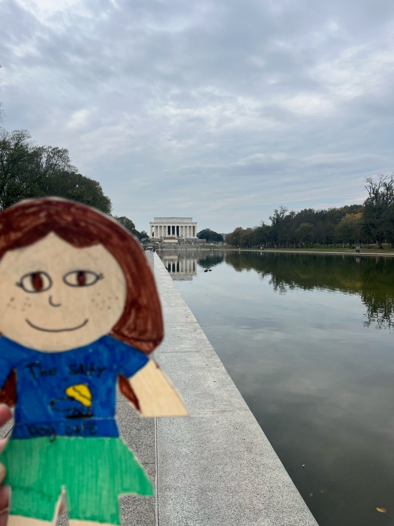 Flat Cata walked the mall today and visited the Washington Memorial, dipped her toes in the fountain at the WWII Memorial, walked along the Lincoln Memorial Reflecting Pool, climbed the stairs to the Lincoln Memorial, and waved to the President at the White House!