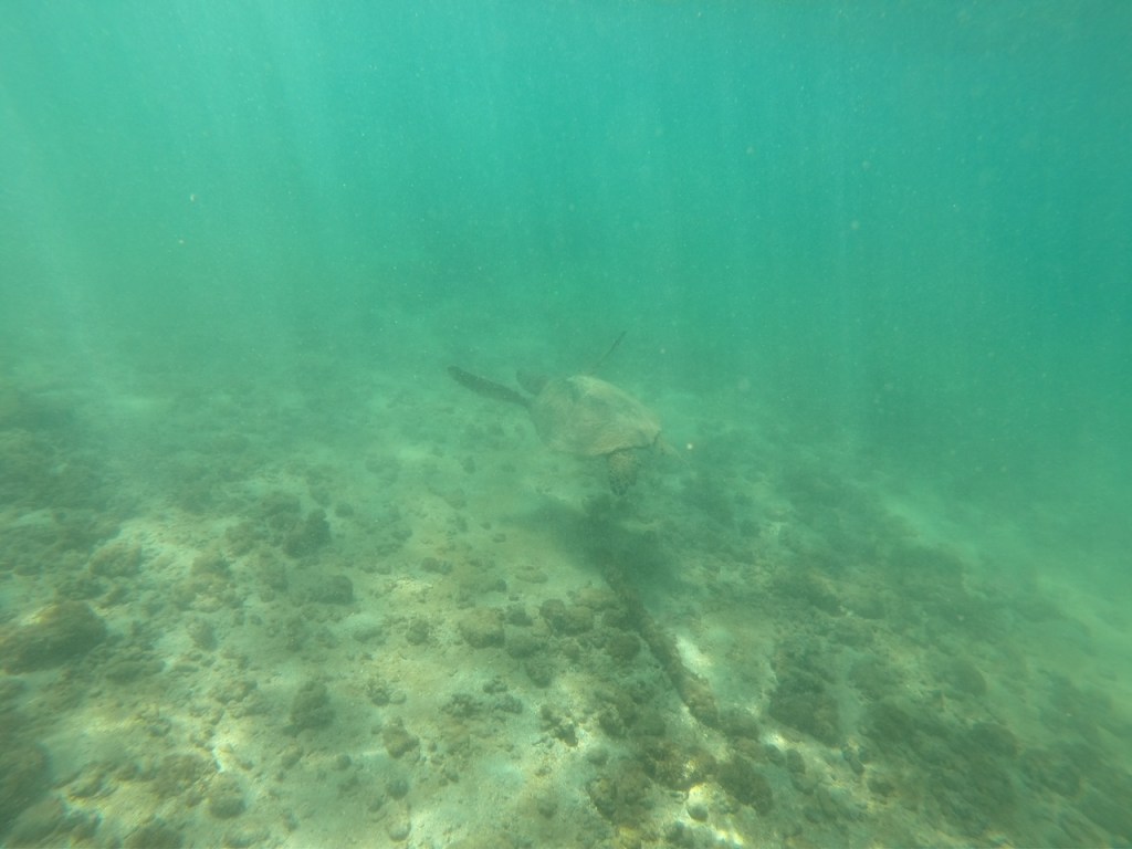 We went swimming and saw a turtle today!
