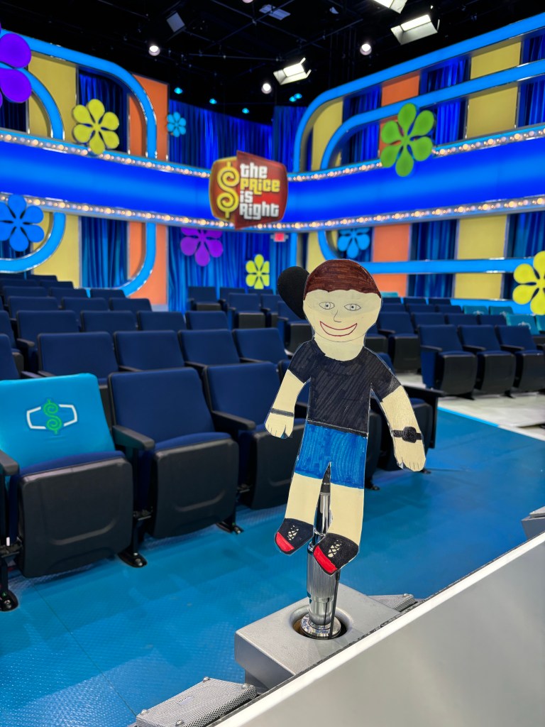 Please see enclosed pictures of Flat Leo’s journey to Los Angeles and the set of The Price Is Right! He was able to bid on prizes, spin the week and help mix the audio for the show! He’ll be headed to Washington soon!