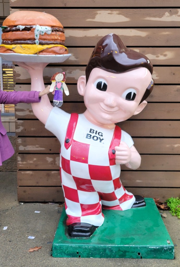 On December 16th, Flat Anna was back in Mason, Ohio to visit the Frisch’s Big Boy statue just before it was removed from the iconic restaurant. This is a picture Flat Anna can tell her grandchildren about!