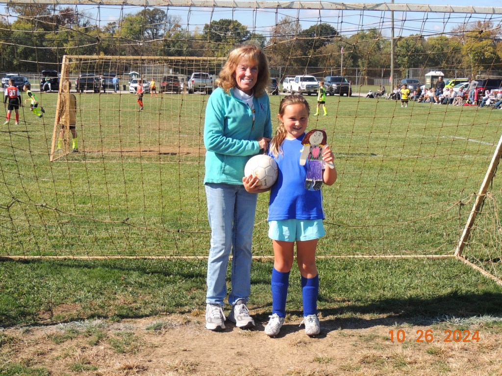 My name is Nancy Selm. I am Miss Anna Selm’s grandmother, and I received Flat Anna on October 20th. We live on Mason, Ohio and are having fun showing Flat Anna around our hometown. Flat Anna was missing our granddaughter, Anna, so we took her to Milford, Ohio to watch Anna play soccer. It was a beautiful day, and the two Anna’s were so happy to see each other. The attached picture shows the joyful reunion.