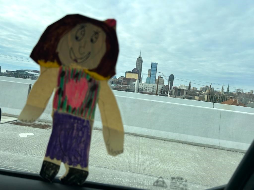 On December 22nd, Flat Anna traveled to St. Louis Missouri to celebrate Christmas with family living there. On the way, she passed by Indianapolis, Indiana. She saw Lucas Oil Stadium where the Indianapolis Colts play football.
