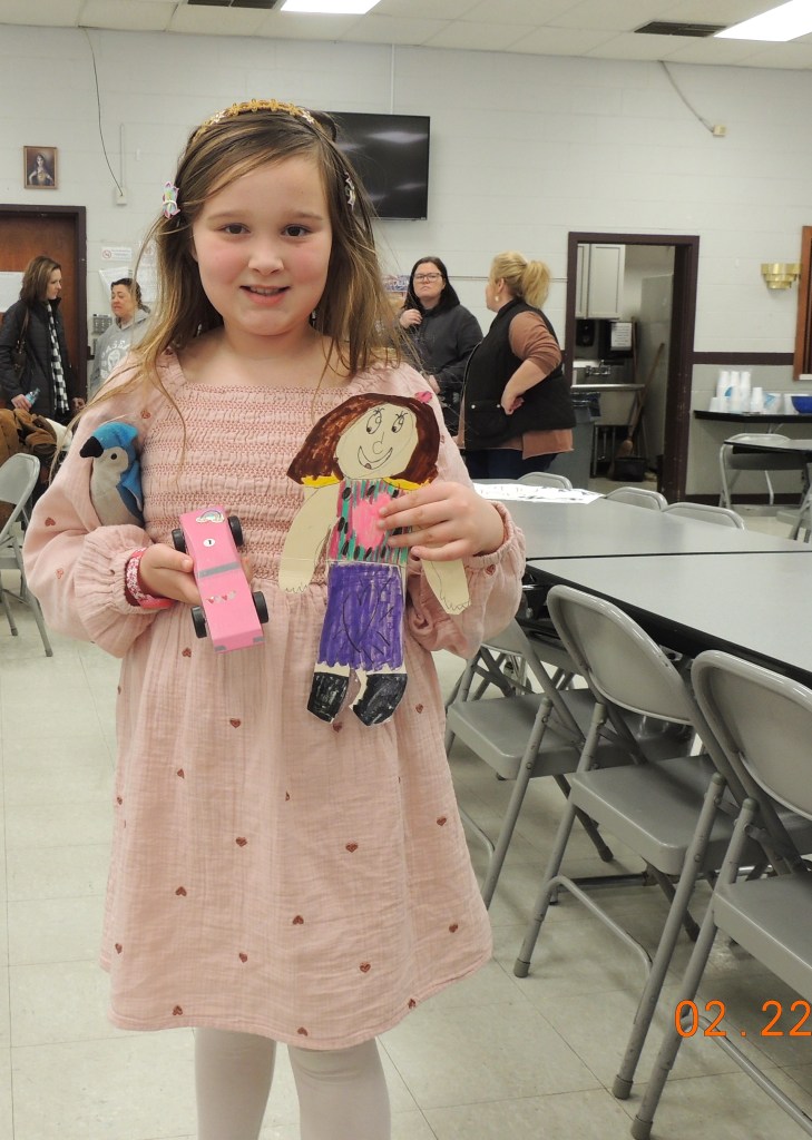 She brought a bluebird along for good luck. Flat Anna’s friend, Anna, entered a car in the race that she named “Pink Flower”.