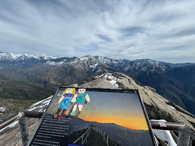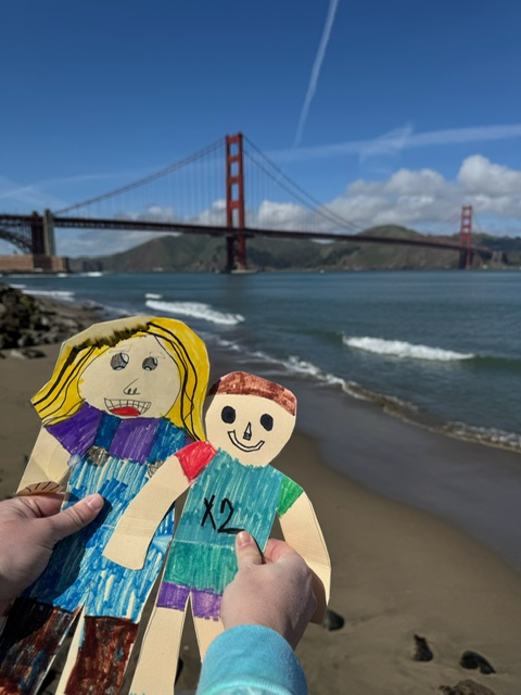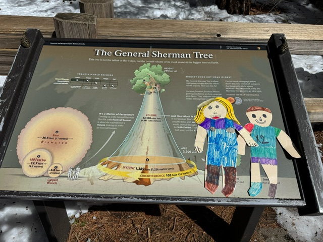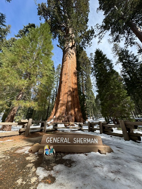 Flat Lila and flat Gregory are off on another adventure to California! On day 1 they saw the Golden Gate Bridge. On day 2 they went you into the mountains in Sequoia National Park. First stop the park sign and tunnel rock. The road used to go underneath the rock but after too many accidents of cars and trucks scraping the rock they moved the road. Next, they saw the General Sherman Tree which is the largest tree in the world by volume and has a circumference of over 100 feet. It is also over 2,000 years old! Flat Lila and flat Gregory then took a snowy hike on the congress trail where they saw so many giant sequoia trees. They ended day two with one last climb up Moro rock where you can see for miles!