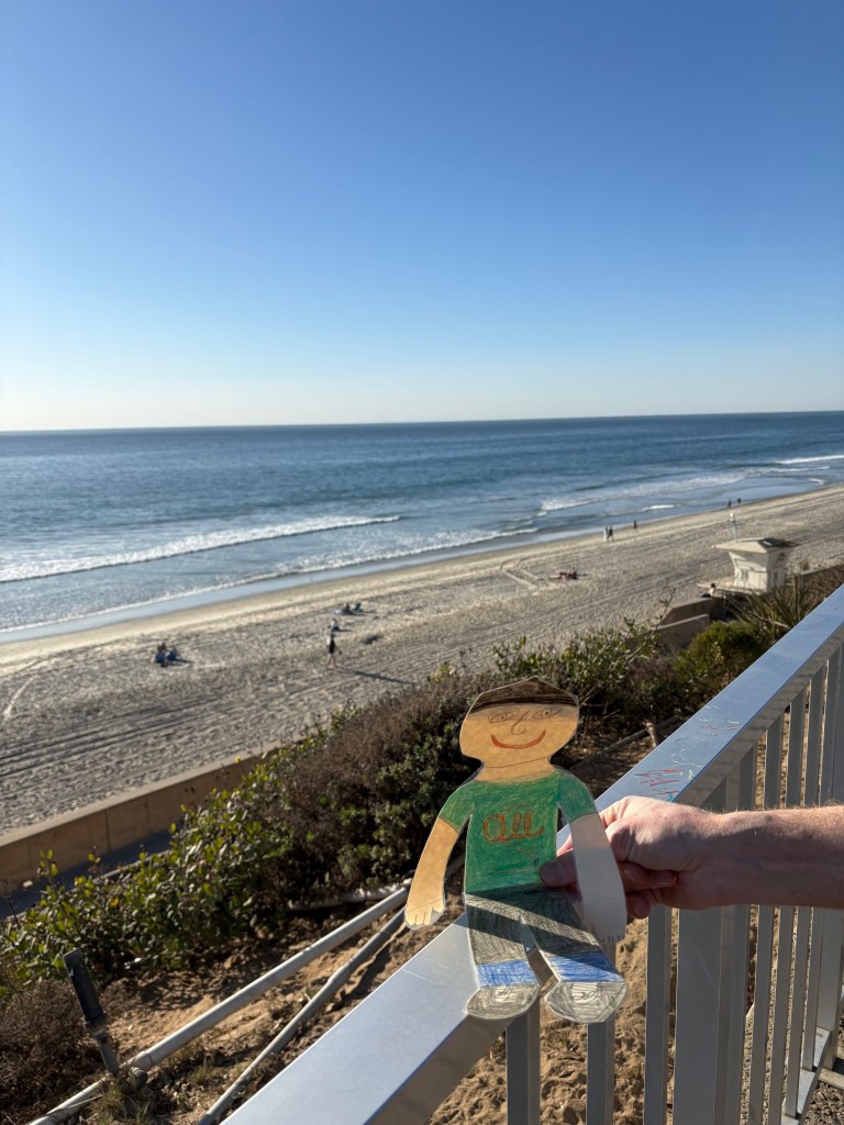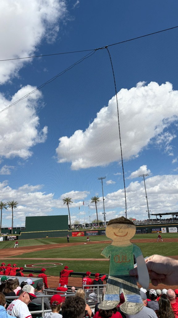 We also took Flat Henry to see his first view of the Pacific Ocean and watched the sunset. Recently we traveled with Flat Henry to go see the Cincinnati Reds play a spring training game in Arizona as well!