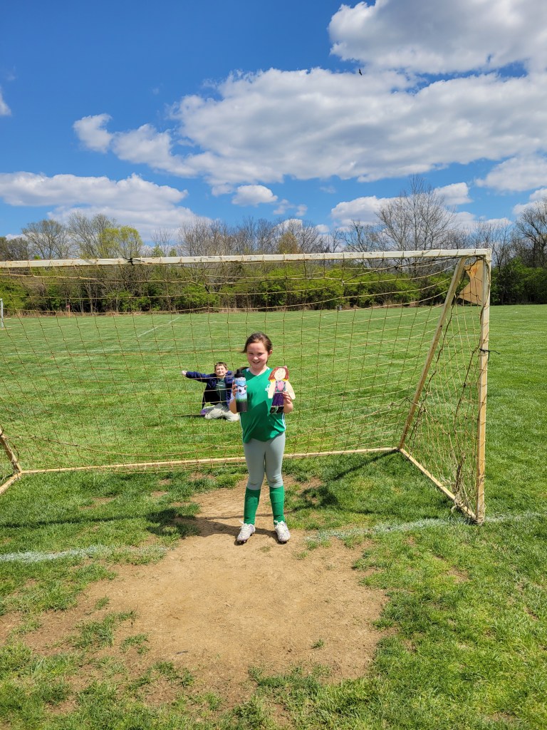 Flat Anna got a picture with her favorite player, Anna, who had a really cool soccer water bottle.