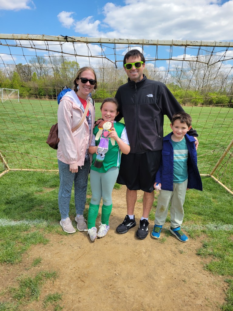 On April 12th, after a long, cold winter, Flat Anna was happy to go to a soccer game to watch the green team play.