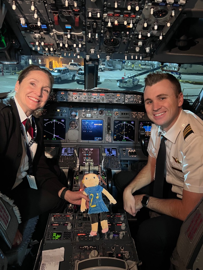 The flight attendant Cindy notice me getting my picture taken and knew who I was and she said she’d take me to the cockpit and take my picture with the pilots. How fun!! Look at all the stuff up there.