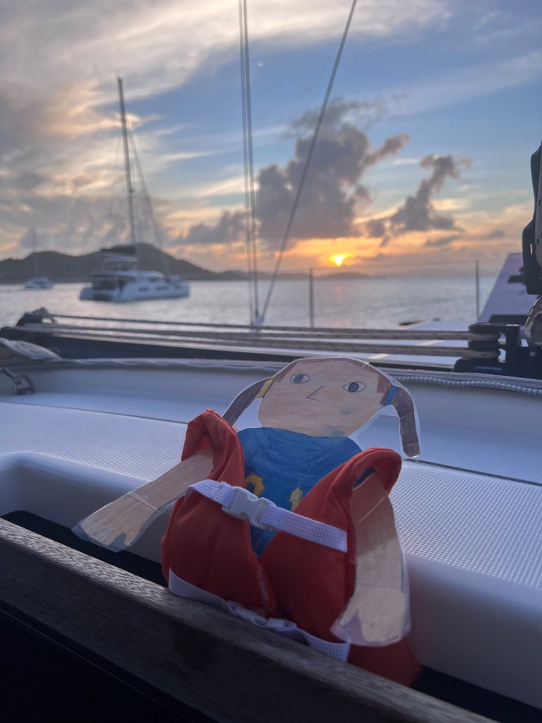 Sunset at Cooper Island BVI. The sun is setting over the island of St John in the USVI which is part of the USA. Today we are going to sail to another island Virgin Gorda BVI. Catch you later.