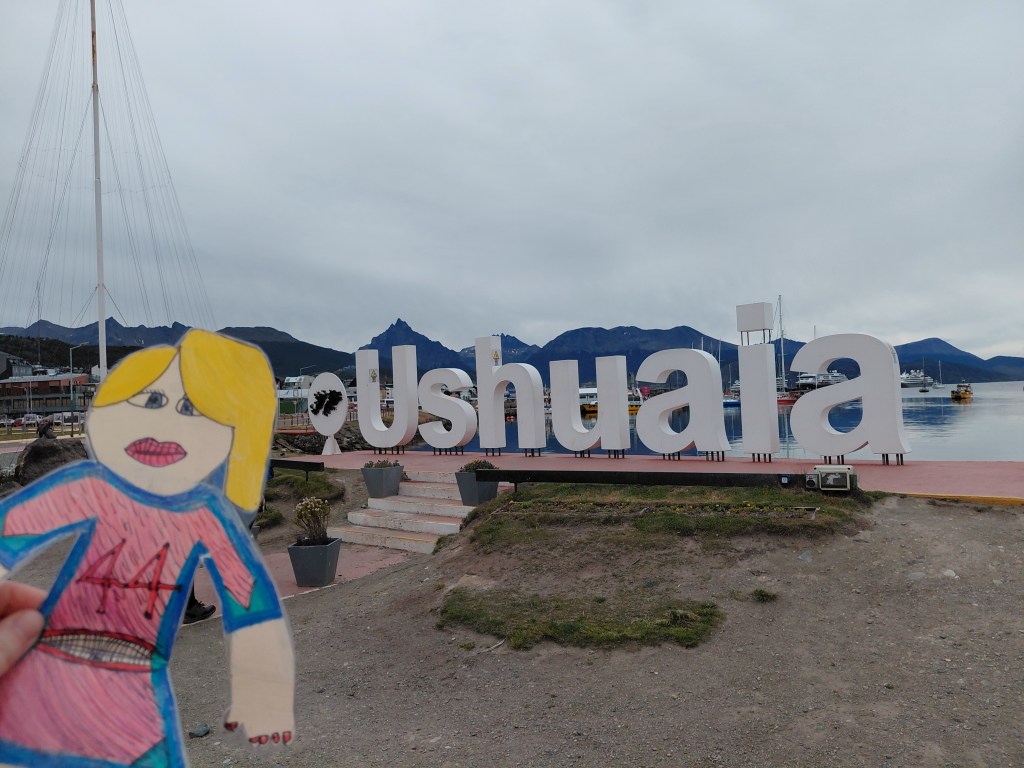 Flat Eli and Flat Macie checking in from the End of the World, also known as Ushuaia, Argentina, because it is the southernmost city in the World!