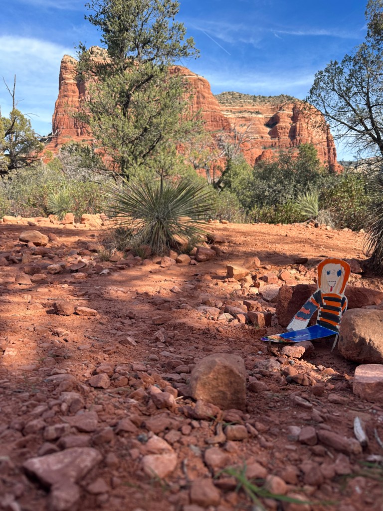 It’s me, Flat Leo, and I wanted to send a quick update to share what I’ve been up to recently. I got lucky and was able to catch a flight out west – and decided to try a new activity, mountain climbing! I spent some time in Phoenix, Arizona and decided to try climbing up a mountain called Camelback Mountain. This mountain is located in a place called Echo Canyon, and is is actually shaped like a camel’s back. I did not see any camels on my hike, but I definitely felt a little bit scared because some of the areas were really steep! The summit of the mountain was 2,700 feet above the ground, and it took me about 2 hours to hike up there. I had to be really careful as I have lots of other adventures to still take before coming back in May.
